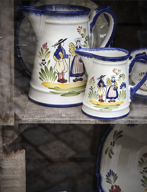 This colorful pottery is known for its hand decorated designs reflecting the culture of the Brittany region of France. In fact, it has the overall look and feel of folk art rather than finely crafted pottery. These pieces are often used in the French country style of decorating.